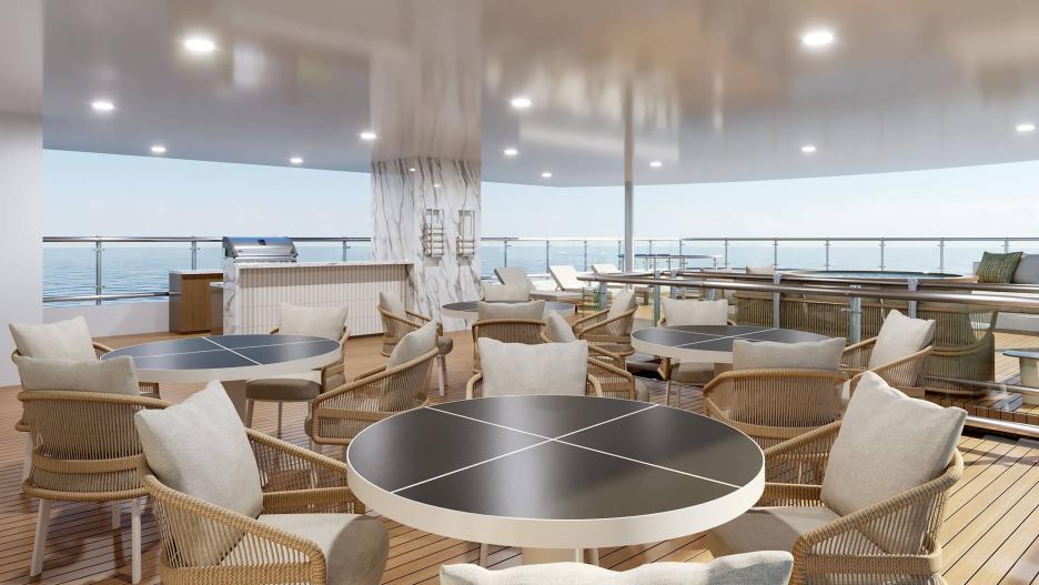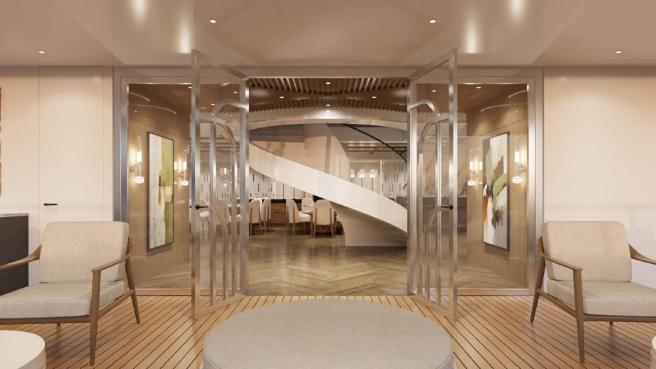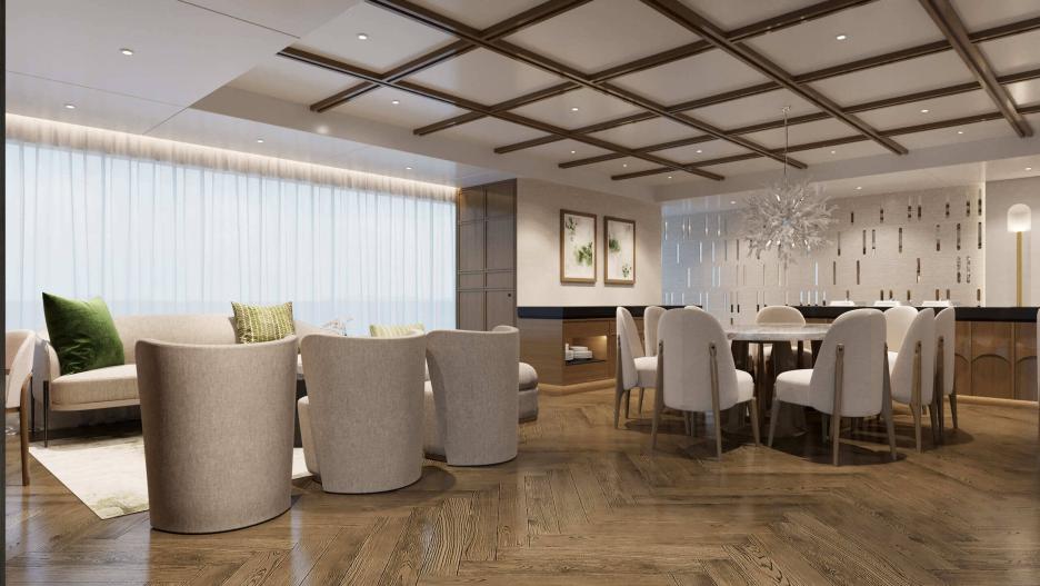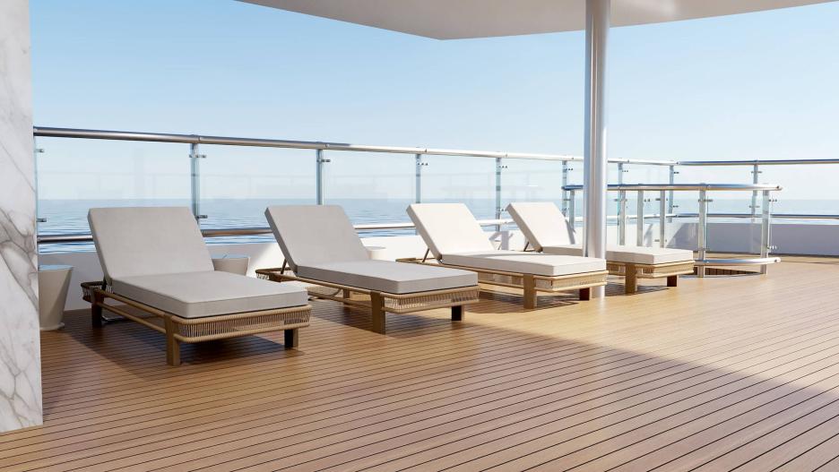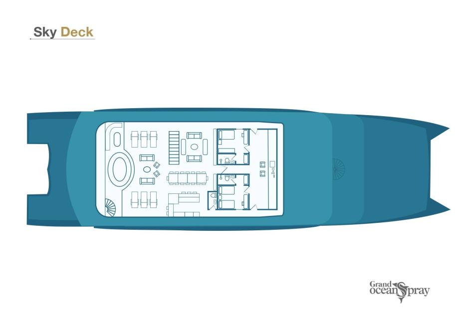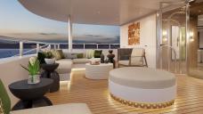 Зоны отдыха и досуга включают панорамную SPA-зону, джакузи на открытой палубе, обеденный зал, бар и обеденную зону на открытом воздухе.