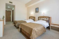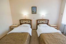 Вы разместитесь в двухместных номерах корпуса «Терк», отеля «Чайка» или «Армхи» с 2 односпальными кроватями, ванной комнатой, кондиционером, письменным столом, телевизором, чайным набором. На территории есть бассейны, баня, спа-зона, ресторан, горнолыжные трассы, пейнтбольная площадка, веревочный парк. Работает мобильная связь и Wi-Fi.