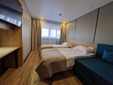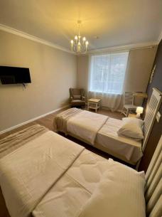 Отель расположен в центре Владикавказа, на берегу реки Терек. Вы разместитесь в стандартных двухместных номерах с двуспальной или двумя односпальными кроватями, телевизором, системой кондиционирования и ванной комнатой с душем.