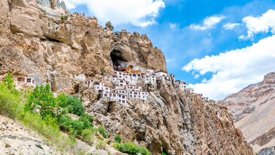 Побываем в буддийском монастыре в долине Лунгнак, построенном на скале вокруг естественной пещеры
