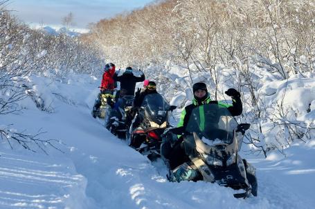 Утром после завтрака вас ждет трансфер к месту начала снегоходного маршрута: вы переоденетесь в экипировку и поедете в сторону Авачинского вулкана.