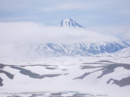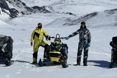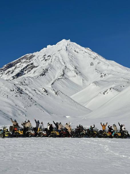 При благоприятной погоде вы подниметесь на снегоходах на Авачинский вулкан до высоты 2 200 метров