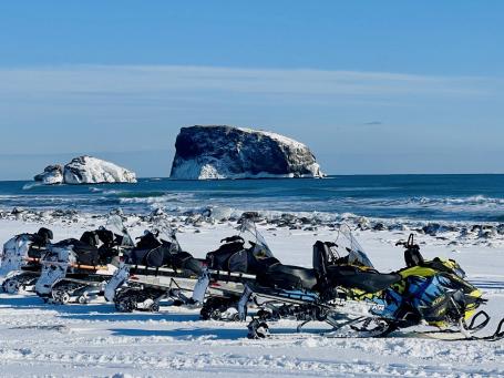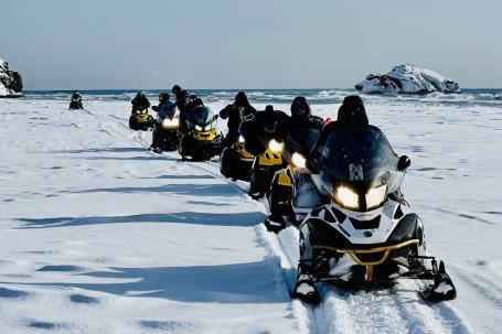Доедете на снегоходах до Халактырского пляжа и смотровой площадки на мысе Маячный