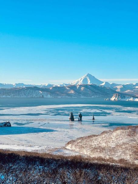 Утром вы позавтракаете и отправитесь в район озера Приливного (около 1,5 часов). Добравшись до места, вы пересядете на снегоходы и поедете к берегу Тихого океана, где подниметесь на мыс Вертикальный. Далее доберетесь до мыса Маячного — отсюда открывается живописный вид на Авачинскую бухту, окружающие её вулканы и скалы Три Брата — один из символов Петропавловска-Камчатского.