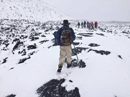 При благоприятных погодных условиях, хорошем состоянии снега и достаточной физической подготовленности группы подниметесь на вершину Авачинского. Восхождение начнется с высоты 2 200 метров — это крайняя точка, до которой можно добраться на снегоходе. Затем вам пешком нужно будет набрать 540 метров до лавовой пробки, закрывающей жерло Авачинского вулкана.