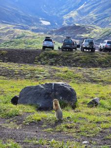 Сегодня вас ждет поездка на автомобиле повышенной проходимости к подножию вулкана Мутновский и на смотровую площадку высокогорного перевала. В хорошую погоду отсюда открываются панорамные виды на вулканы Горелый, Мутновский и Вилючинский.