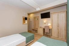Вы будете жить в двухместных номерах с двуспальной или двумя односпальными кроватями и собственной ванной комнатой.