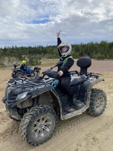 После встречи на вокзале Сортавалы вы позавтракаете в кафе и отправитесь к месту начала маршрута на квадроциклах. Вы послушаете инструктаж по технике безопасности и подберете экипировку, после чего вас ждет квадро-маршрут по карельской тайге (2 часа). Вы проедете по лесным дорогам вдоль живописных озер. На пути вы сделаете остановку в месте, где в прошлом находилась школа финских разведчиков — сегодня от нее остался только фундамент.