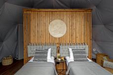 Вы будете жить в шатре с двуспальными или односпальными кроватями, камином, шкафом для одежды, биотуалетом и раковиной. Душевые находятся на берегу озера. На территории есть панорамный шатер-ресторан с верандой, две купели-фурако, русская баня, костровая зона с местами для сидения, беседка-мангальная.