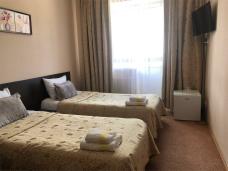 Вы разместитесь в двухместном номере с двуспальной или двумя односпальными кроватями и ванной комнатой.
