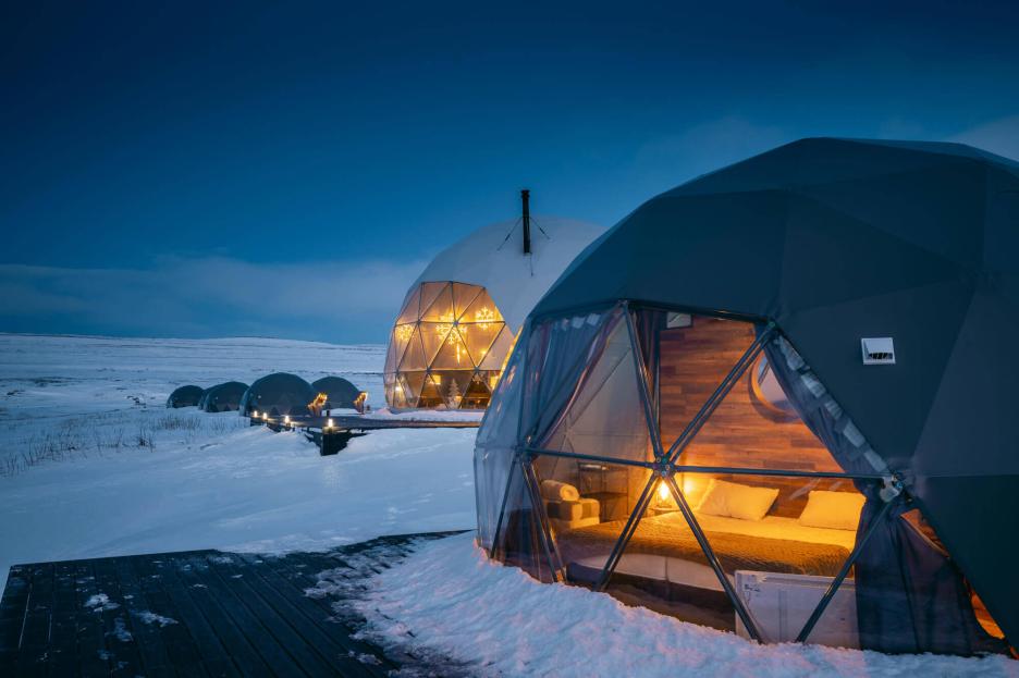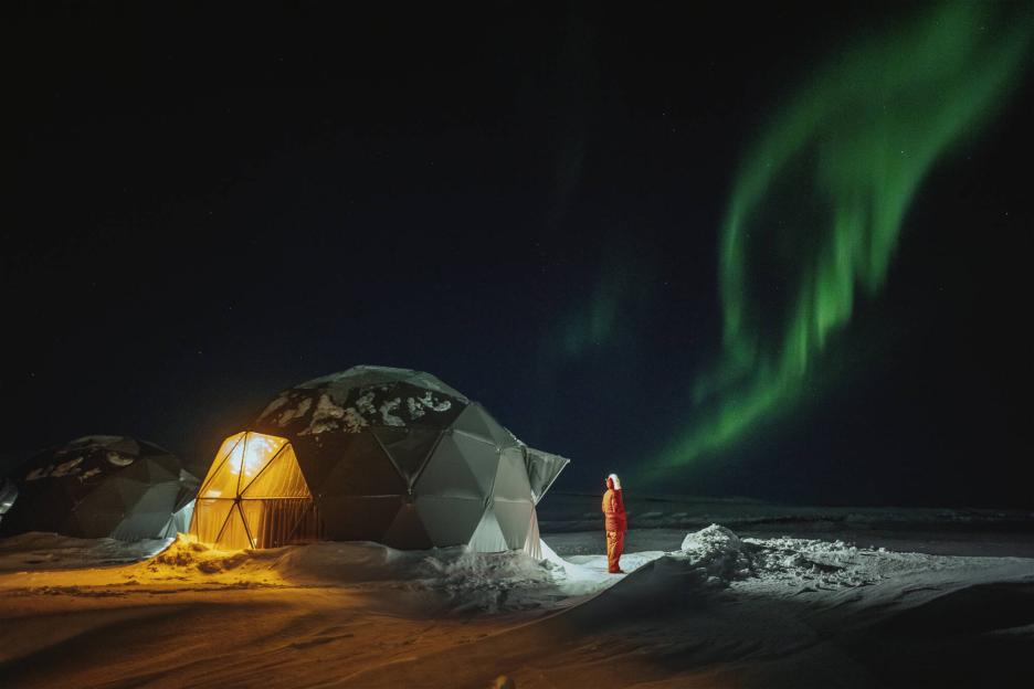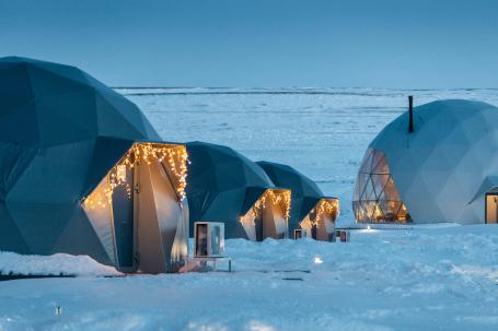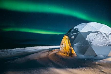 Вы будете окружены комфортом: разместитесь в экосферах глэмпинга со всеми удобствами и панорамным видом на Баренцево море.
