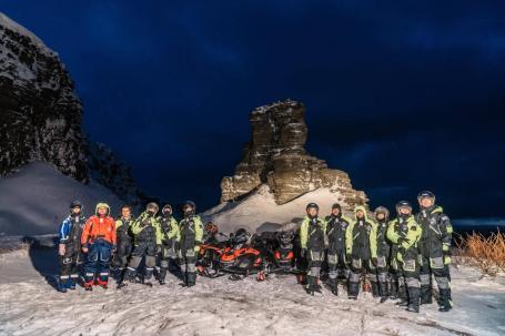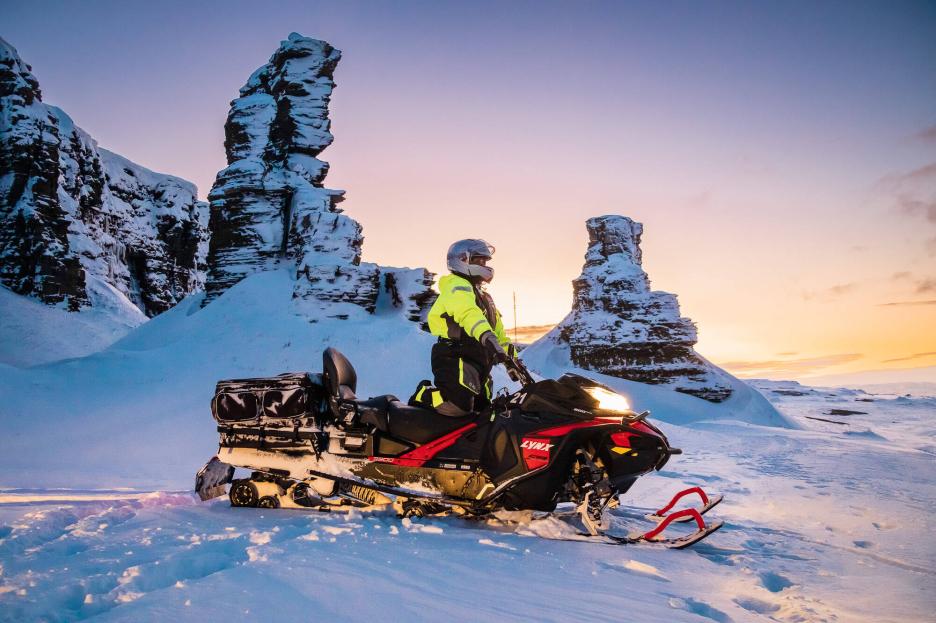 Поездка на снегоходах. Вы отправитесь на полуостров Средний, а по пути посетите несколько уникальных природных локаций на побережье Баренцева моря. Вы увидите скалы Два Брата и Берег рыжих камней. Вам предоставят снегоходы BRP Lynx Ranger 59 Ace, а также выдадут защитные комбинезоны. Пообедаете вы на маршруте — с собой у вас будут ланч-боксы.
