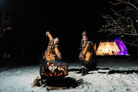 В 16:30 начнется праздничный банкет. Сначала саамские шаманы проведут ритуалы очищения, сопровождаемые древними мелодиями, танцами и легендами, которые помогут вам ощутить переход в Новый год.