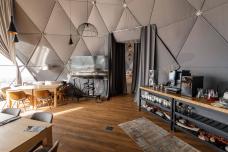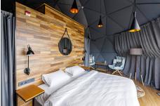 Вы разместитесь на берегу Баренцева моря в одной из 14 комфортабельных купольных сфер площадью 27 м² с двуспальной или двумя односпальными кроватями, душем и туалетом, зоной отдыха с креслами, отоплением, помещением для сушки одежды. На территории есть панорамный ресторан с просторной зоной отдыха, банный комплекс, бани-бочки и бочки-фурако.