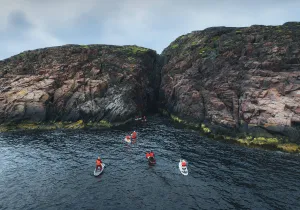 Вы посетите несколько интересных мест вдоль побережья, искупаетесь, увидите пустынные песчаные пляжи, дикие безлюдные бухты, поросшие лишайником фьорды. При желании и за доплату можно сходить в баню на корабле. Кроме сапсерфинга, вы сможете порыбачить — попробовать поймать треску, окуня, зубатку, пикшу.