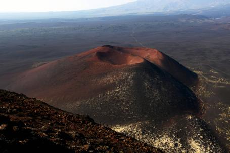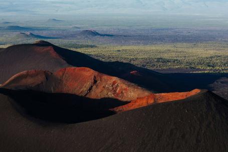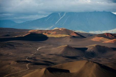 Окрестности вулкана засыпаны черным вулканическим песком и шлаком. Интересно, что такой состав на 96% соответствует поверхности Луны, — в советские годы здесь даже проводили испытания лунохода.