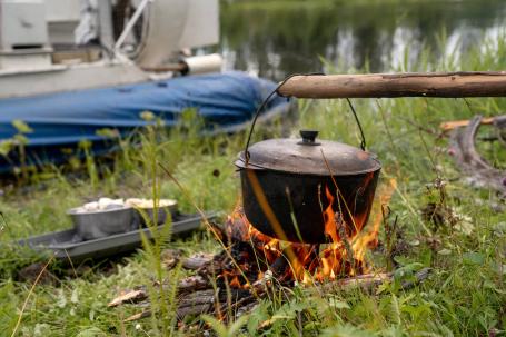 Позавтракав, вы на водометных лодках отправитесь исследовать окрестности и впервые закинете удочку. А обед пройдет в формате пикника на живописном берегу.