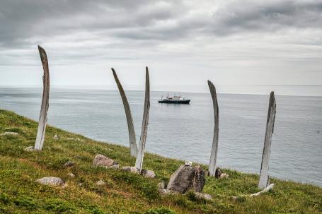 Далее вы высадитесь на берег в селе Янракыннот. Оно расположено на холме на берегу пролива Сенявина — в месте впадения в пролив реки Марич. В окрестностях села вы увидите Кладбище китов — сотни огромных костей служат памятником традиционному чукотскому зверобойному промыслу.