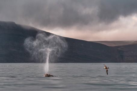 В бухте Гильмимыль вы прогуляетесь по цветущей тундре и искупаетесь в горячих источниках — здесь расположено более 150 выходов термальных вод. Затем вы вернетесь на судно и перейдете в бухту Пэнкигней, где на лодках-зодиаках поищете встречи с серыми и гренландскими китами — сможете подойти к ним близко и увидеть бьющие из воды фонтаны.