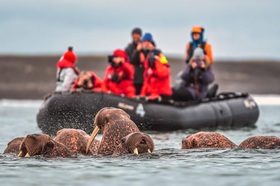 На экспедиционных лодках вы отправитесь к огромному лежбищу моржей и понаблюдаете за ними с близкого расстояния. Также на острове вы сможете увидеть редчайший вид птиц — кулика-лопатня. А если повезет, даже встретите медведей, которые часто приплывают сюда с материка.