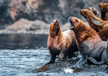 Затем ваше судно направится к Птичьим островам — во время прогулок на экспедиционных лодках вы понаблюдаете за тысячами морских птиц. А еще увидите игривых сивучей и проплывающих на спине каланов (возможно, даже со спящими детенышами на животах).