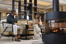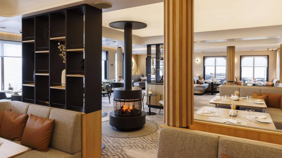 В каждой каюте: камин с эффектом живого пламени, мини-бар (пополняется ежедневно), сейф, зона для отдыха и ванная комната.