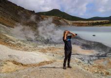 На дне кальдеры вы увидите озера Горячее и Кипящее. В их водах содержится большое количество серных и сульфидных соединений, а на берегах озера Кипящего клубятся многочисленные фумаролы. Здесь вы в полной мере ощутите силу вулканической активности — прогуливаясь по этому «вулканическому полю», нужно быть предельно осторожными, чтобы не обжечься.