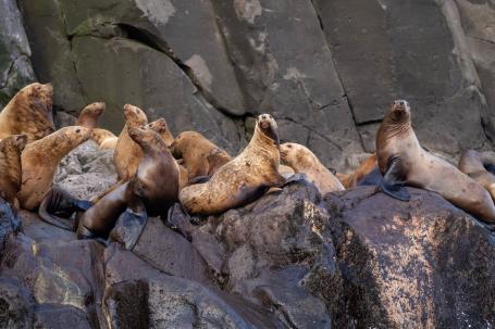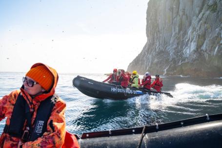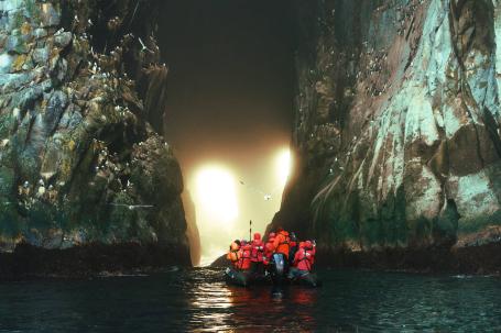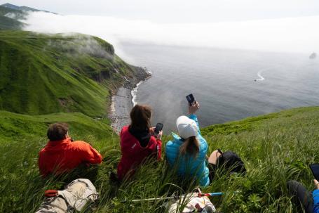Ваша экспедиция начнется уже сегодня — с прогулки на лодках-зодиаках в бухте Русская. Вы близко подойдете к сивучам и, возможно, увидите одну из крупнейших птиц планеты — белоплечего орлана с размахом крыльев до 2,5 м. В период нереста на побережье встречаются бурые медведи, а у входа в бухту часто появляются косатки.
