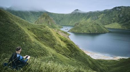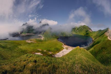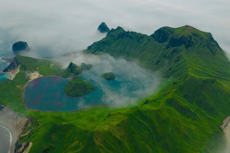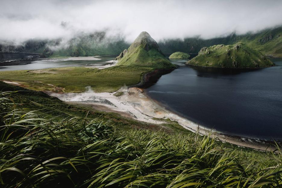 Зайдете в затопленную кальдеру вулкана Ушишир. Это одно из самых красивых мест на всем Дальнем Востоке