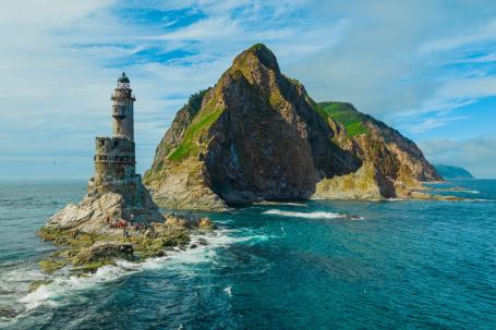 Лайнер доставит вас в порт Корсаков — всего в 35 км от Южно-Сахалинска. По пути вы увидите одну из знаковых достопримечательностей Дальнего Востока — скалистый мыс Анива, на котором возвышается старинный японский маяк.