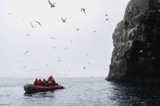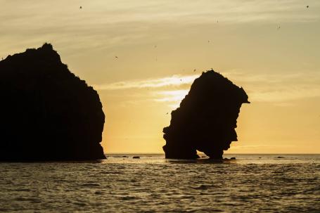 Во второй половине дня судно подойдет к острову Анциферова — вершине древнего потухшего вулкана. На лодках-зодиаках вы отправитесь к шумным птичьим базарам, а также к одному из крупнейших лежбищ сивучей на Курилах. Тюлени здесь совсем не боятся людей и с любопытством подплывают прямо к лодкам.