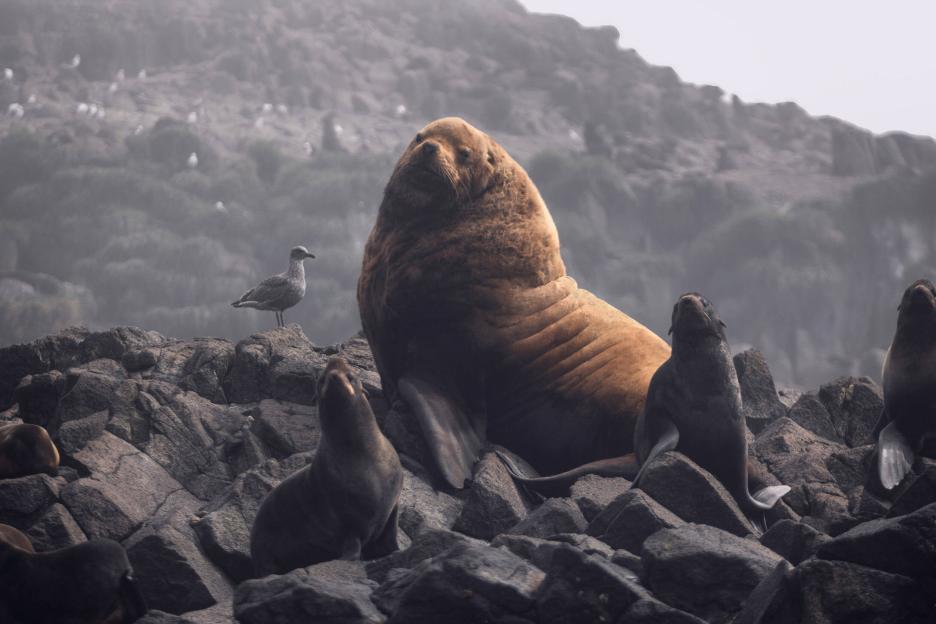 Ваша экспедиция начнется уже сегодня — с прогулки на лодках-зодиаках в бухте Русская. Вы близко подойдете к сивучам и морским котикам. А если повезет, увидите одну из крупнейших птиц планеты — белоплечего орлана с размахом крыльев до 2,5 м. Также в период нереста на побережье встречаются бурые медведи, а у входа в бухту часто появляются косатки.