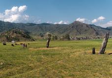 Далее вы отправитесь в долину реки Юстыт. Здесь находятся пастбища, которые на протяжении тысяч лет использовались кочевниками. Об этом говорят мегалитические стелы, петроглифы, курганы, огромные каменные насыпи и выкладки из валунов, сосредоточенные в этих местах. Вы увидите наиболее интересные археологические памятники.