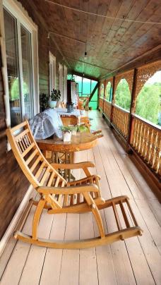 В доме также есть кухня с печью. На территории: терраса, баня, купель и прокат велосипедов.