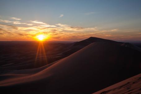 Утром встречаем рассвет. Первые лучи солнца окрашивают пески в золотой цвет, выявляя идеальную игру света и тени на склонах, созданных ветром. У нас будет время для прогулок, фотосессий и созерцания бескрайних песчаных просторов, созданных ветром.