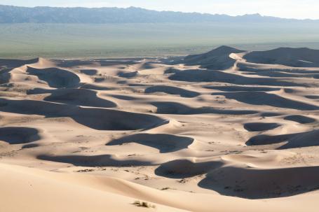 Наша цель — песчаный массив Хонгорын-Элс. Эти «поющие» дюны, местами достигающие 300 метров в высоту, — одни из самых высоких в мире.