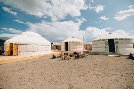 «Корона Укока» находится среди степи на плато Укок. Вы разместитесь в юртах по два-три человека. Внутри каждой юрты есть односпальные кровати и печка, на территории лагеря — баня.
