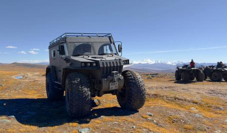 Из аэропорта до села Кош-Агач и обратно вас отвезут на автомобиле Toyota Land Cruiser. По бездорожью до плато Укок и по плато будете передвигаться на вездеходе «Севертрак».