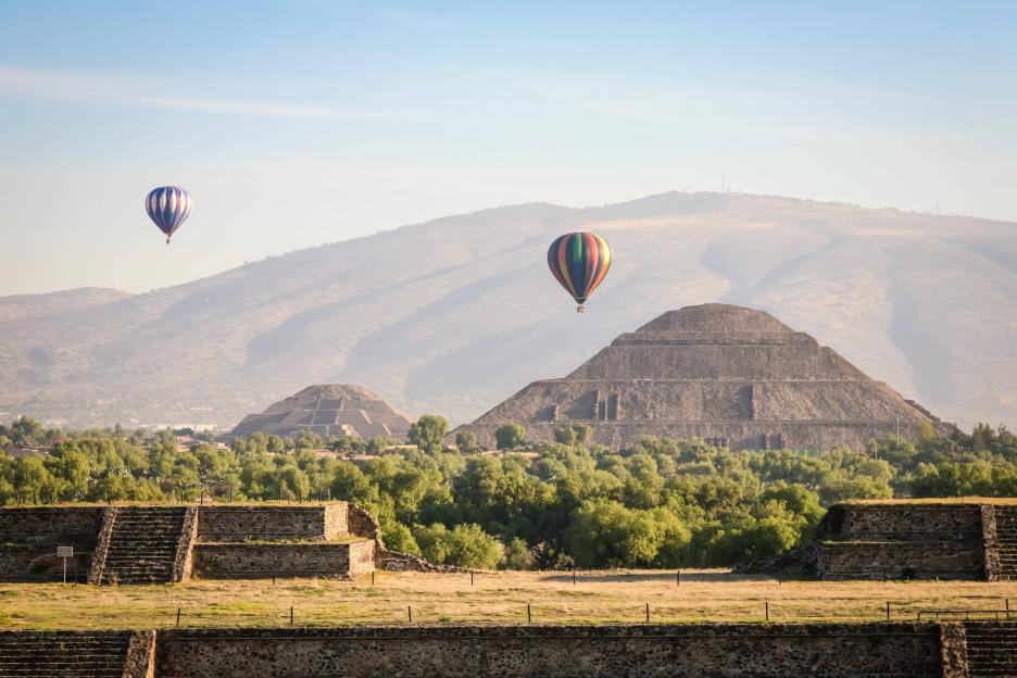 Исследуем с земли пирамиды древнего города Теотиуакан, а желающие смогут посмотреть на его величие с высоты, совершив полет на воздушном шаре