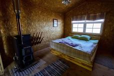 В домике: кровати-трансформеры, печка, шкаф и стол, биотуалет.