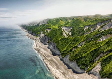 На Итурупе прогуляетесь вдоль фантастических Белых скал и искупаетесь в термальных источниках на склоне вулкана