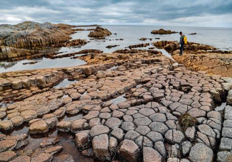 После обеда-пикника вас ждет трансфер до берега. Оттуда начнется маршрут по побережью Охотского моря до мыса Столбчатый (7 км в обе стороны). Мыс Столбчатый — визитная карточка острова Кунашир. Он сложен из многогранных «столбиков», которые образовались в результате медленного выдавливания вязкой лавы, застывавшей под действием морской воды. В некоторых местах высота столбов достигает 50 метров.
