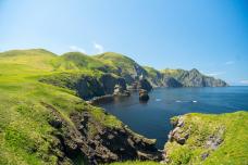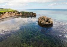 Прибыв в бухту Тихую, вы выйдете к побережью. Увидите живописные лагуны, гроты и ущелья. Если повезет, встретите японских журавлей и нерп на прибрежных скалах. Поднявшись на морские террасы, увидите удивительное разнотравье и эдельвейсы, отвесные скалы, окаймляющие остров, черные камни в зеленых шапках и раскатистые волны.