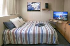 5 кают площадью 33 м². В каюте: просторная гостиная и спальня, туалет и душ, 4 окна, кровать, софа, холодильник, телевизор, DVD-плеер, кофеварка.