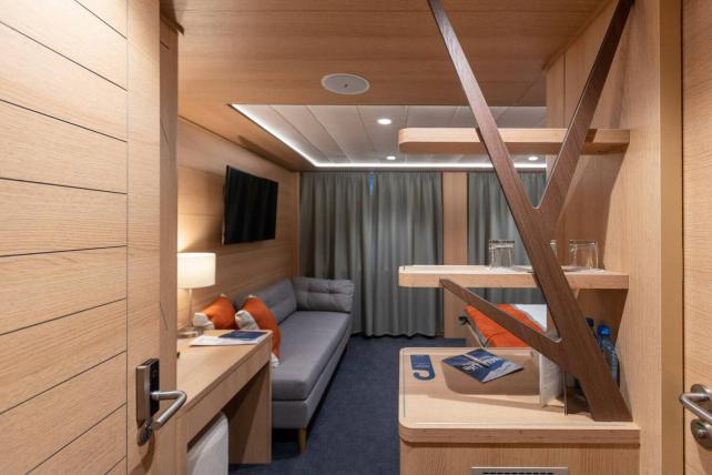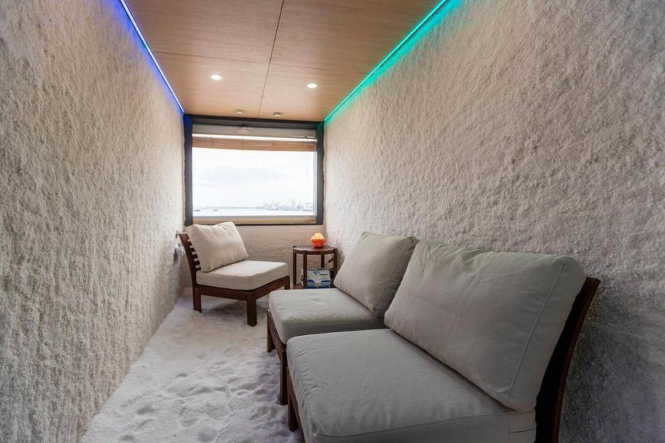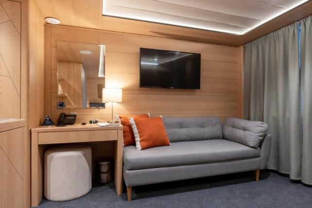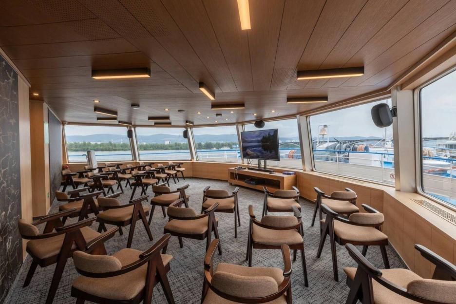 Кроме того, на борту есть конференц-зал (может функционировать как кинотеатр), спа-зона, хамам и сауна, фитнес-зона и тренажерный зал, массажный кабинет и медицинский пункт.