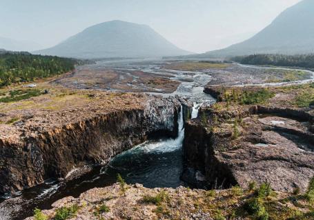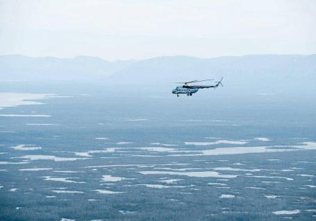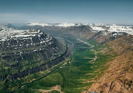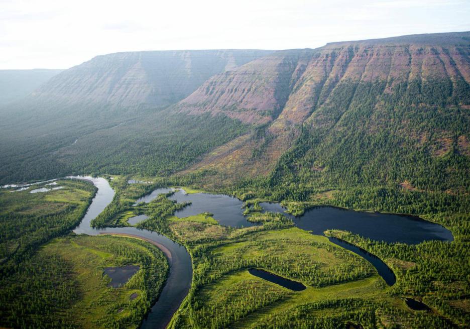 На Плато Путорана во время вертолетной экскурсии увидите панорамы «гор без вершин», пронизанных глубокими ущельями