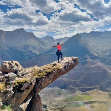 Побываете на кавказском Языке Тролля — скальном выступе, нависающем над пропастью на высоте более 100 м
