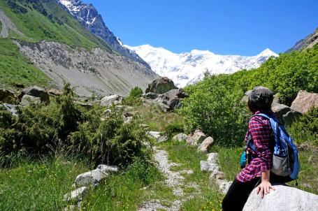 В конце маршрута вы подойдете к Безенгийскому леднику и осмотрите его сверкающую вершину.