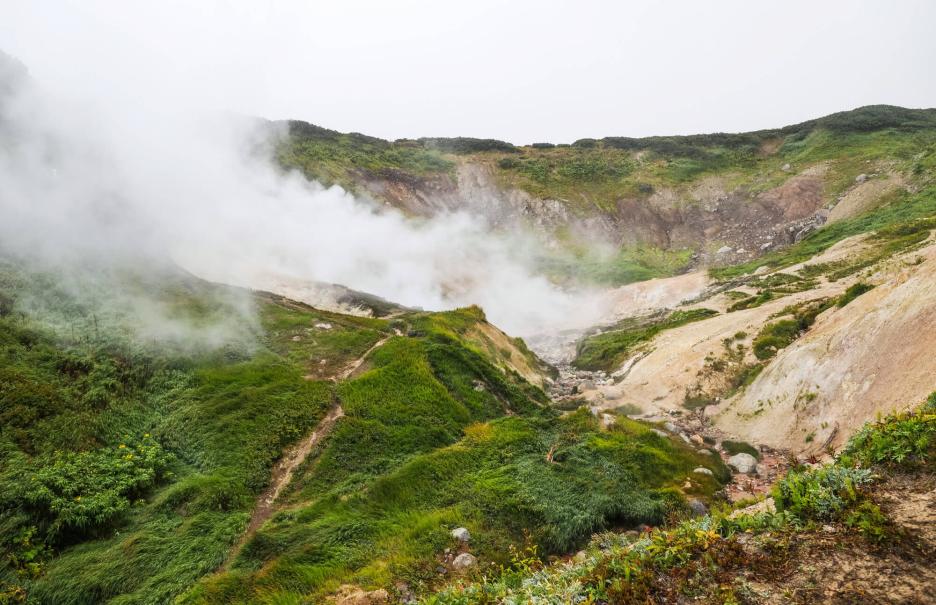 Следующий объект — Мутновская геотермальная станция (40 минут пути от перевала). От станции начинается пеший маршрут к Дачным источникам у подножия Мутновского вулкана (около 2 часов легкого треккинга со спусками и подъемами).