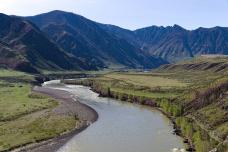 В Курайской степи вас ждет прогулка по холмам, с которых открывается потрясающий вид на Северо-Чуйский хребет, покрытый вечными льдами и снегами. Завершится прогулка на обзорной точке, откуда открывается панорама Чуйских меандр.